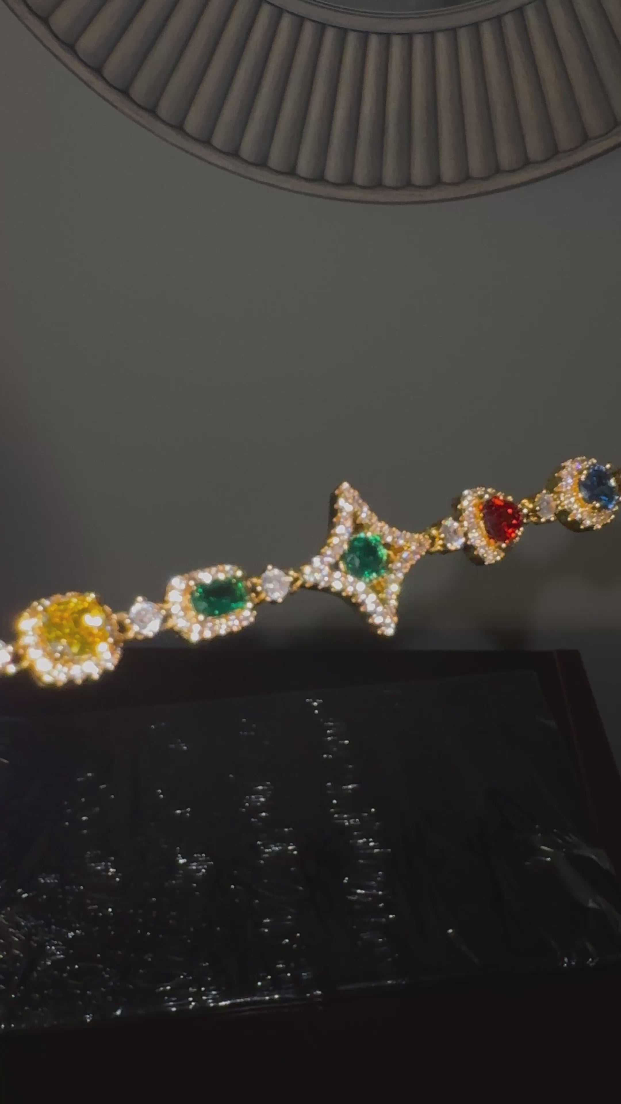 Beautiful and Vibrant Gemstones placed in Gold Jewelry for the perfect radiant glow. Perfect for a night out or for your significant other, this piece shines like no other.